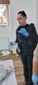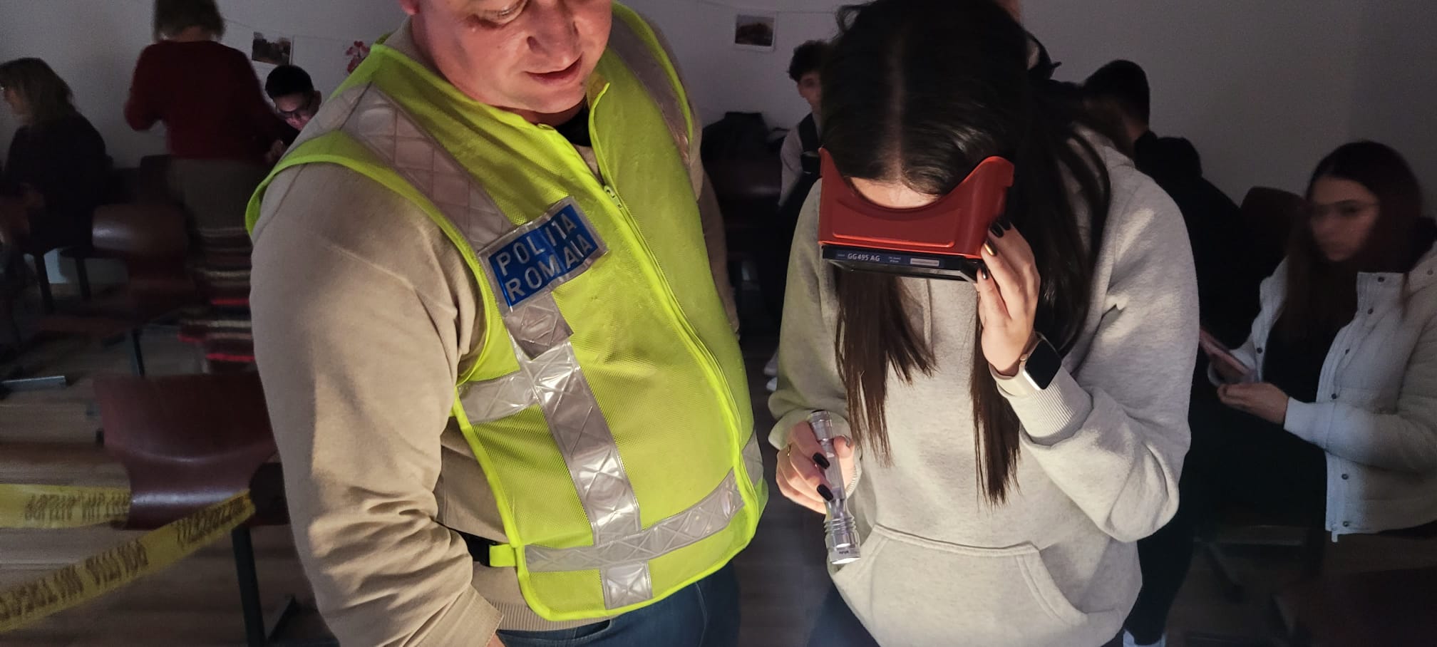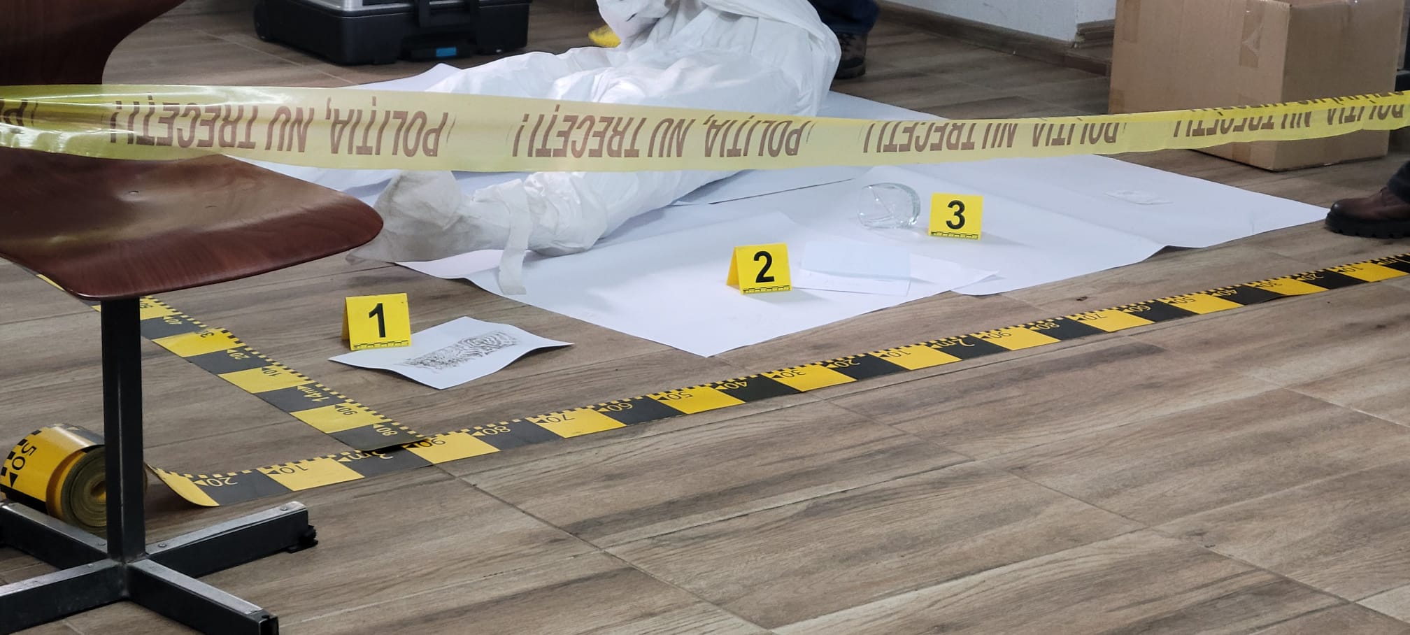 Pentru a ilustra aplicabilitatea noțiunilor teoretice, polițiștii au pus în scenă o cercetare la fața locului, pornind de la un scenariu ipotetic în care o persoană ar fi fost găsită decedată în locuință, existând indicii temeinice privind comiterea infracțiunii de omor. Întreaga activitate s-a desfășurat sub privirile atente ale elevilor, care au urmărit fiecare etapă a intervenției.
